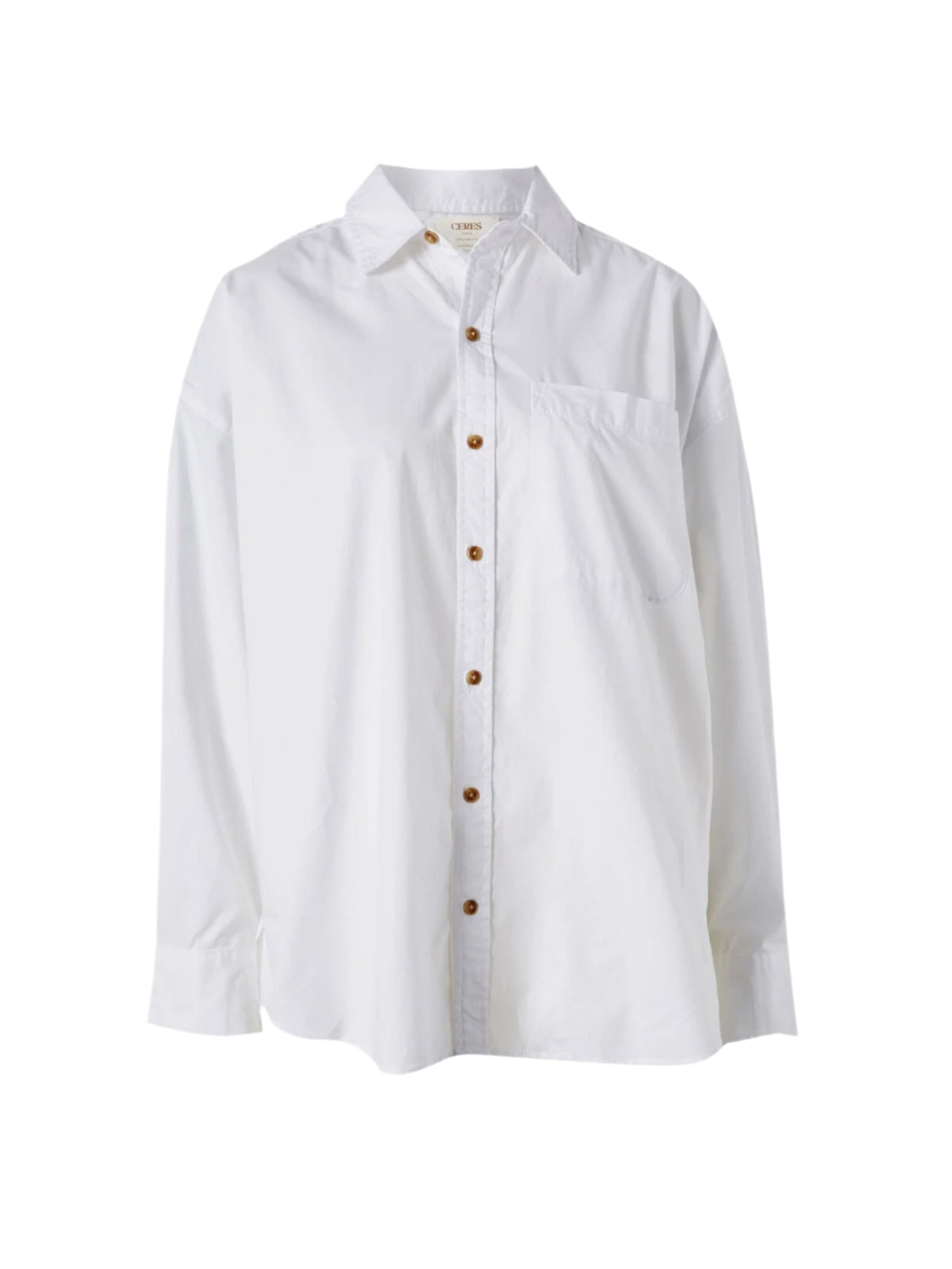 A team favourite for good reason — The Ceres Life White Shirt is the ultimate relaxed classic. Cut in an intentionally oversized silhouette, it’s crafted from crisp, breathable 100% organic cotton poplin that feels cool on the skin and effortless to wear. Finished with refined tailoring details — think drop shoulders, a statement chest pocket, knife pleats at the cuffs, and mid-weight topstitching — this shirt was made to elevate your everyday.