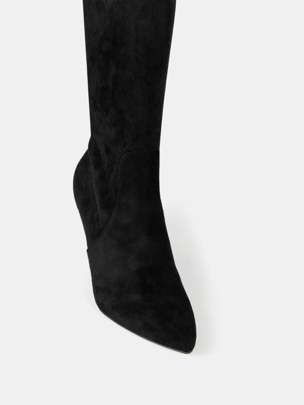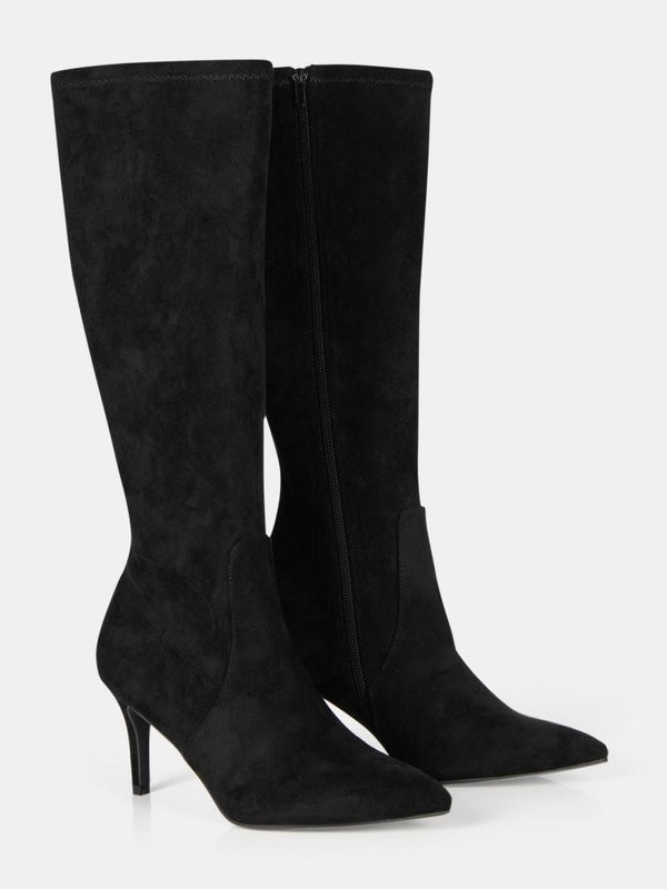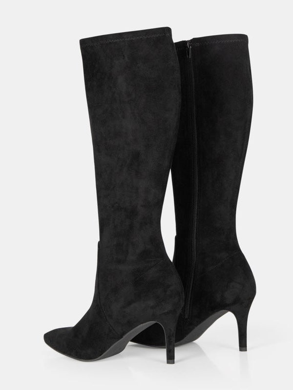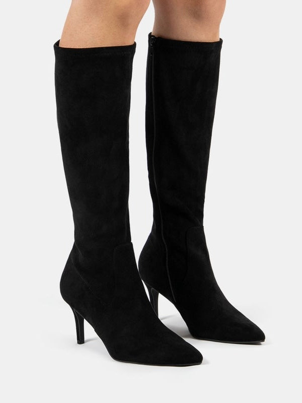 From day to night, Francesca adds a touch of elegance to any outfit! Francesca is a timeless design, with a sleek stiletto heel, pointed toe shape, and a suede like upper material. The zip on the inner side of the boot ensures that Francesca won’t be a struggle to put on and take off and the knee-high fit pairs perfectly with dresses and skirts for a cute winter look!