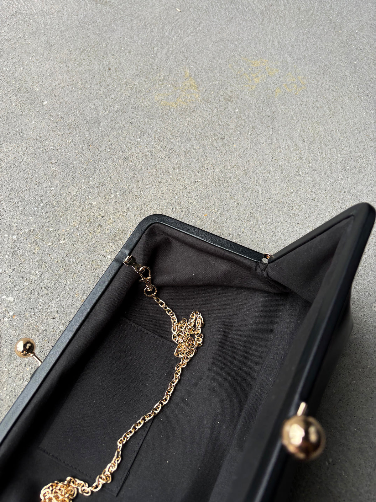 Elevate your everyday style with our vegan leather Kisslock clutch, crafted from premium, smooth vegan leather for a sleek, polished look. This versatile clutch bag features a spacious, fully lined interior and comes with a detachable chain strap, allowing you to wear it as a crossbody bag or carry it as a chic handheld clutch.