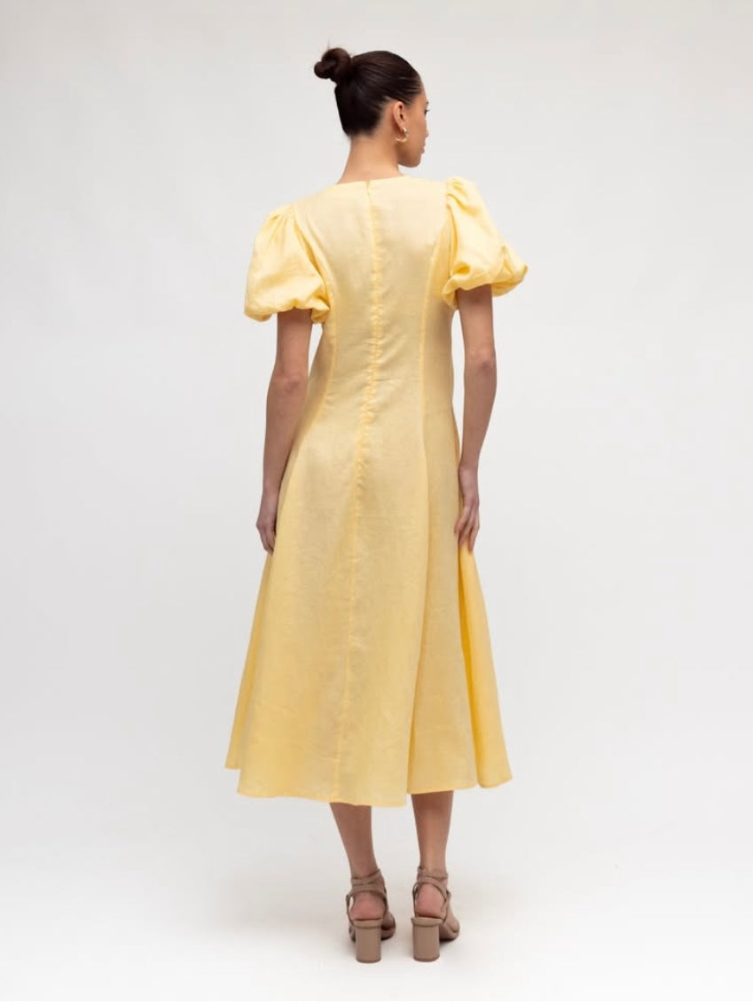 Sunshine dressing, redefined. The Linen Luxe Balloon Sleeve Dress in Butter is your effortless statement piece for warm-weather days and balmy nights. Crafted from breathable linen, this midi dress combines feminine drama with everyday ease — the perfect blend of comfort and polish.
