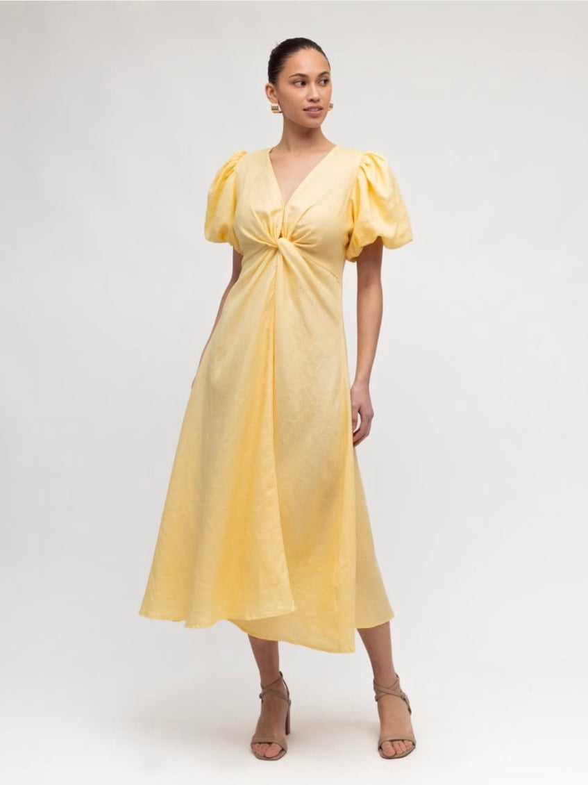 Linen Luxe Balloon Sleeve Dress - Butter