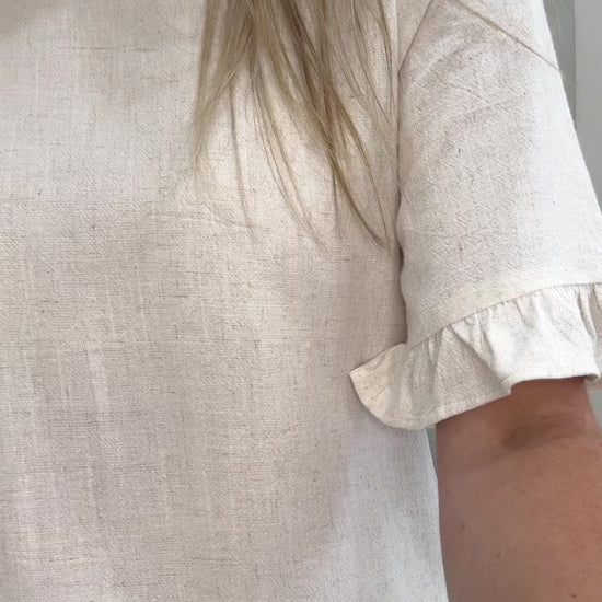 The Mari Linen Ruffle Trim Top – Oatmeal