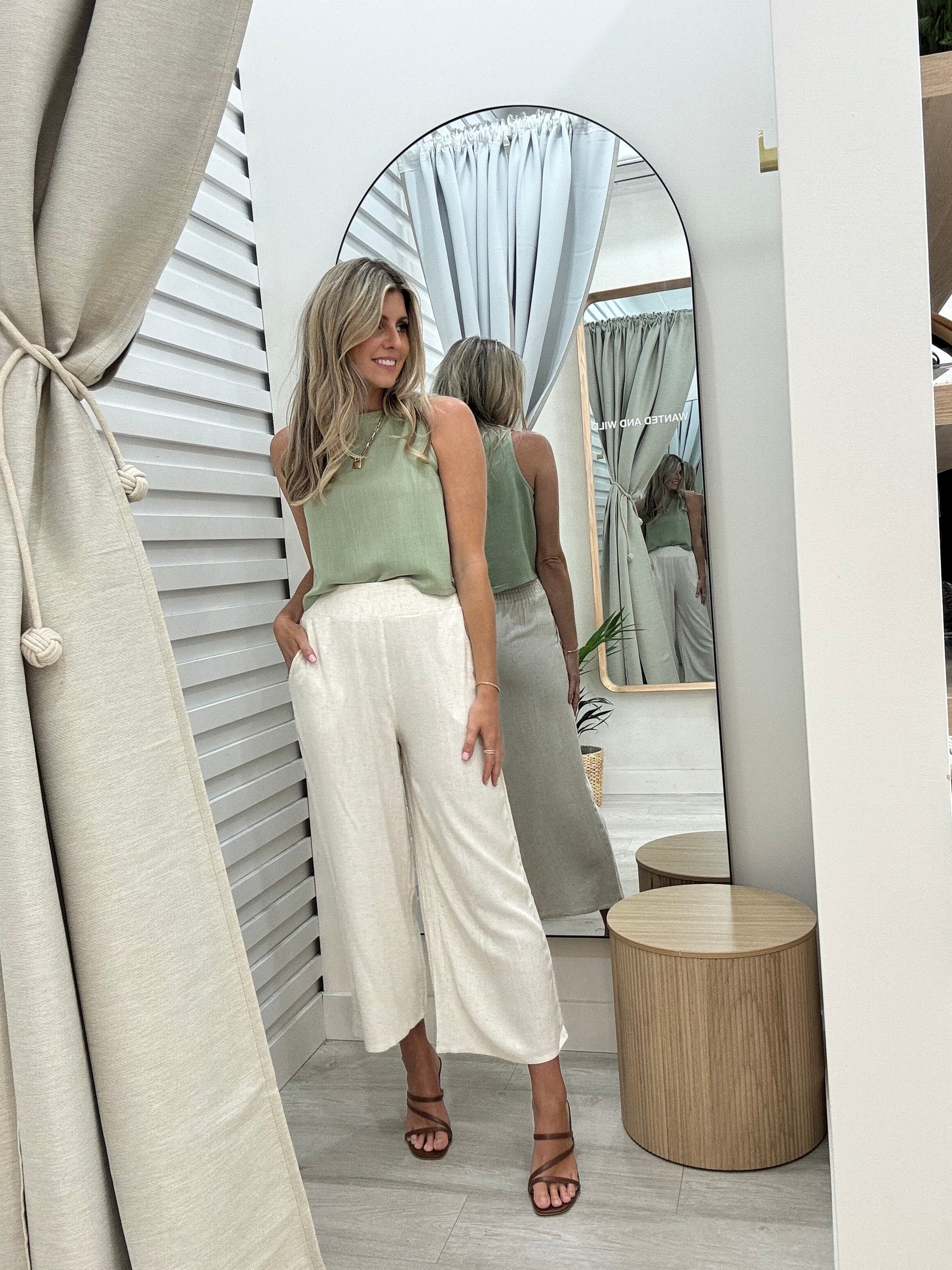 Mari Wide Leg Pants - Oatmeal