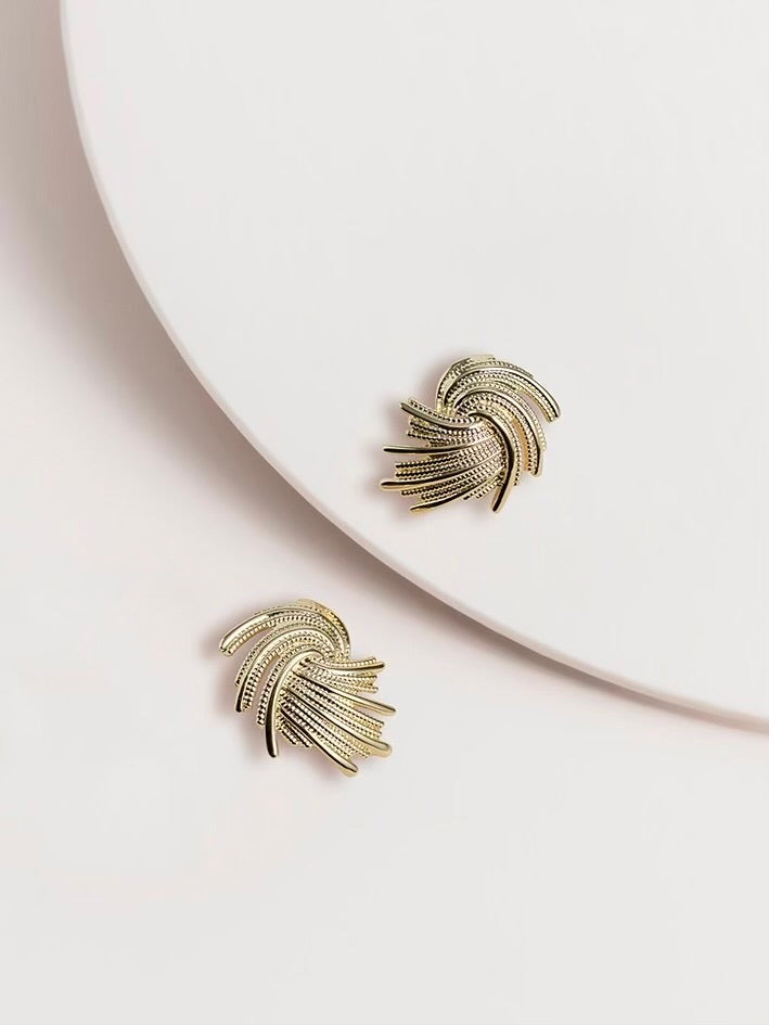 The Gold Deco Swirl Post Earrings feature a polished gold-tone finish with a swirling, art deco-inspired design. Lightweight yet bold, they bring a touch of vintage glamour with a modern edge — perfect for everyday elegance or event styling.