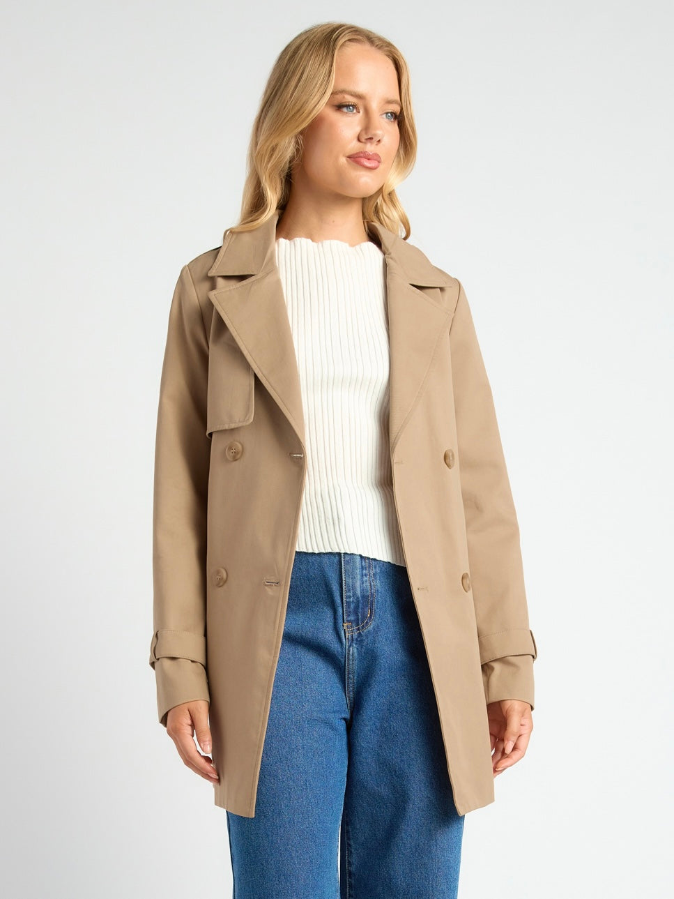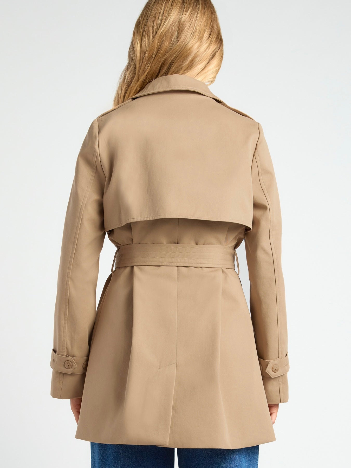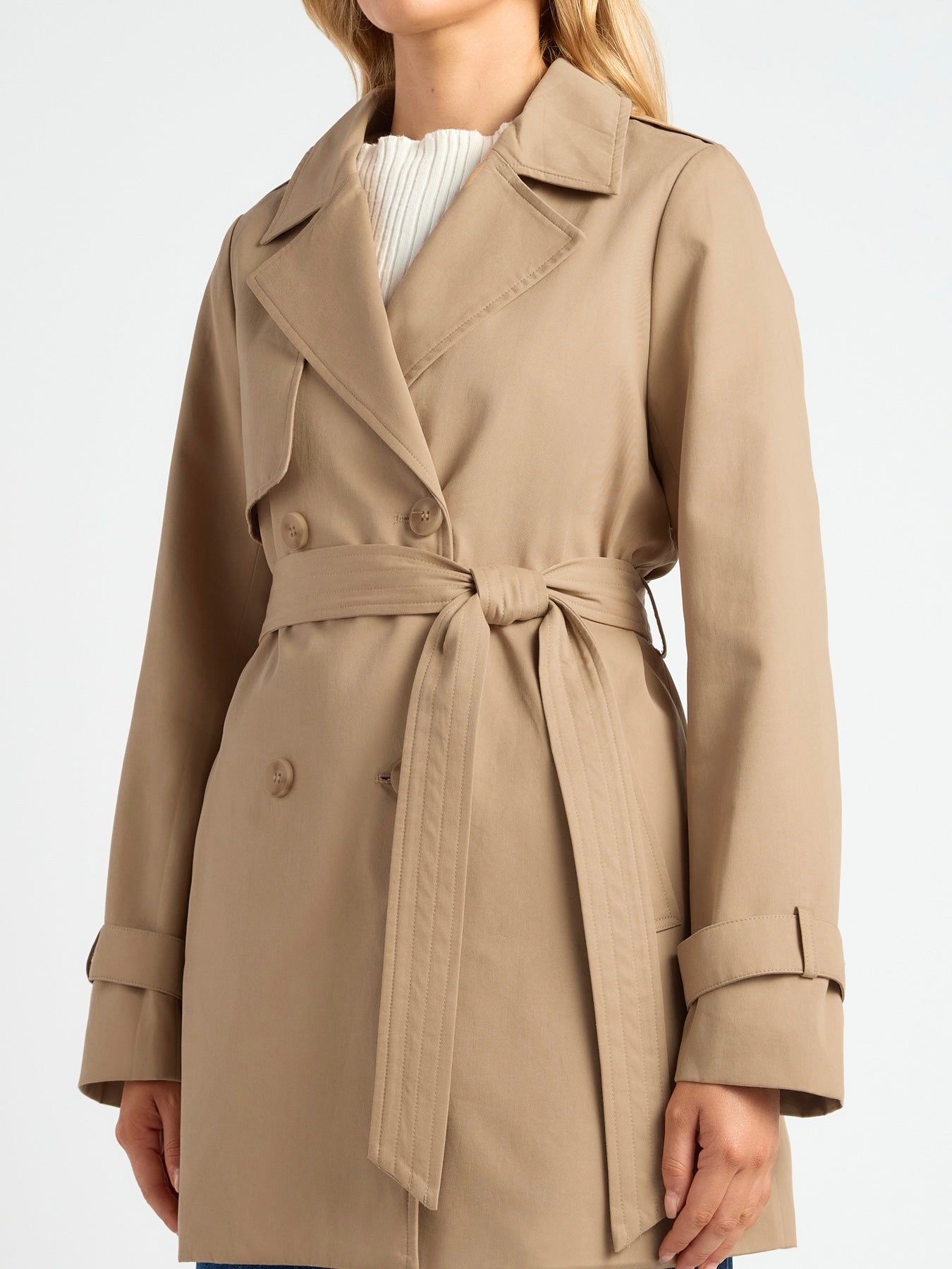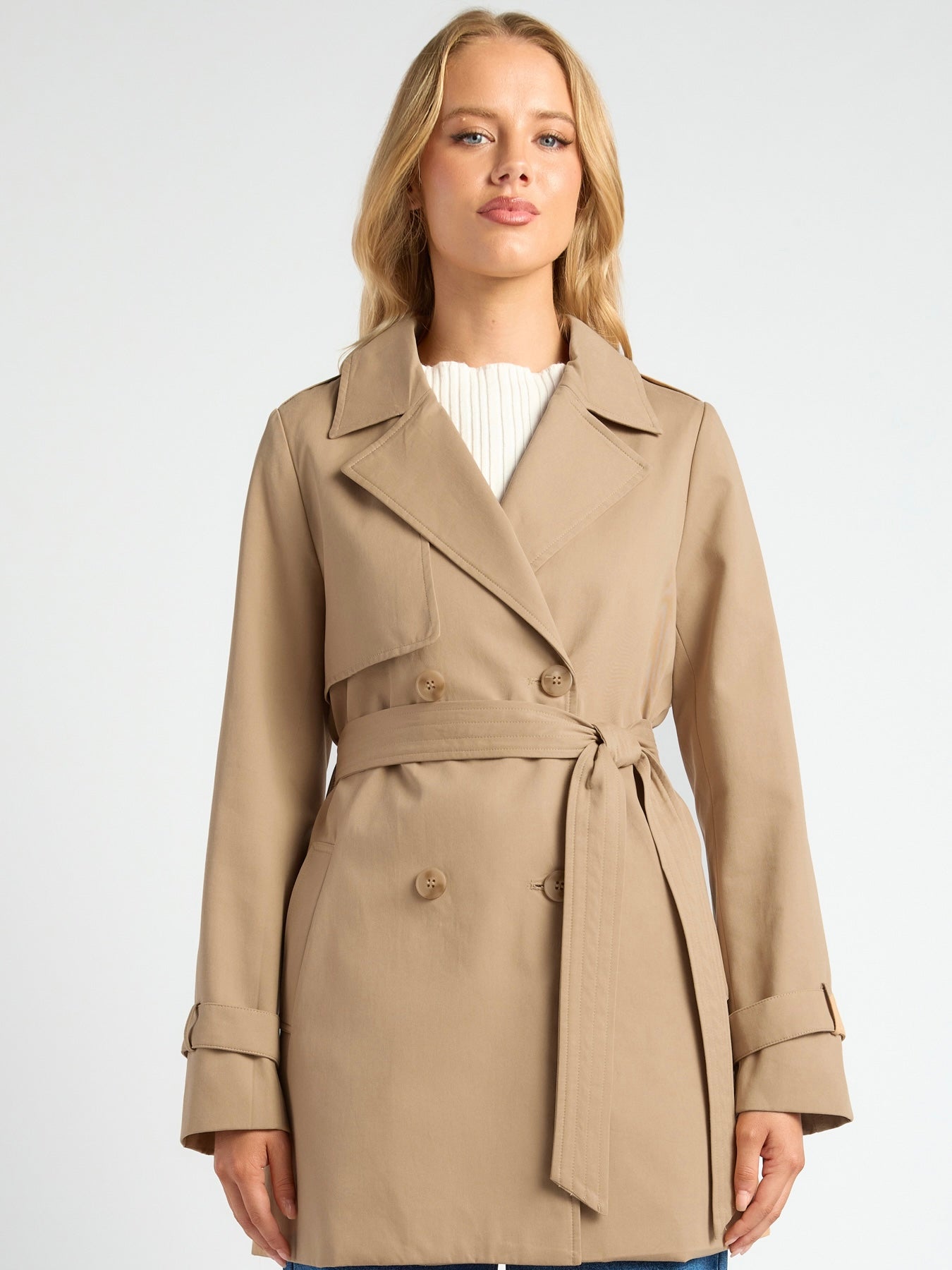 A timeless wardrobe staple, the Midi Trench Coat in Camel adds effortless polish to any outfit. Made from durable polyester, it features a classic double-breasted front, adjustable waist tie, and is fully lined for warmth and comfort.