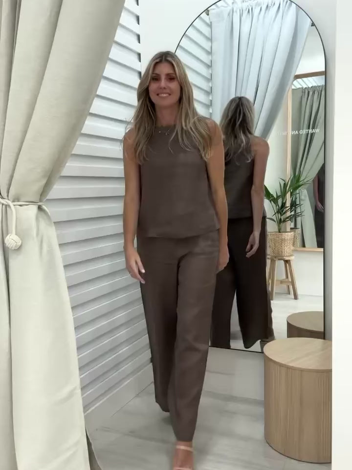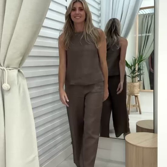 Get ready to turn some heads in The Atlas Crop Top - Espresso This playful and stylish top is made with 100% linen. Available in sizes 6-16, it features a cropped length and sleeveless design, and a round neckline. Our model looks stunning in a size 8. So grab yours today and get ready to make a statement!