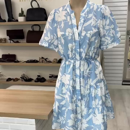 Meet The Cara Dress - Sky Blue, the ultimate addition to your wardrobe for effortlessly chic style! With a playful sky blue and white floral print, this dress is sure to turn heads. Made with a cozy Viscose/Nylon blend, it boasts cute cap sleeves and a flattering waist tie for a customizable fit. And with a knee-length cut, it's perfect for any occasion. Available in sizes 6-16 for a perfect fit every time.