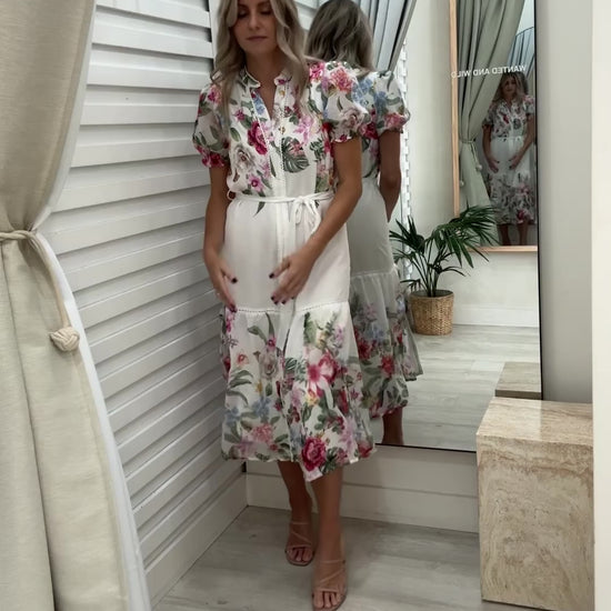 The Josie Midi Dress - Cream Floral