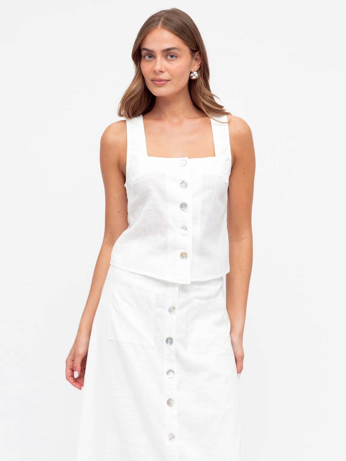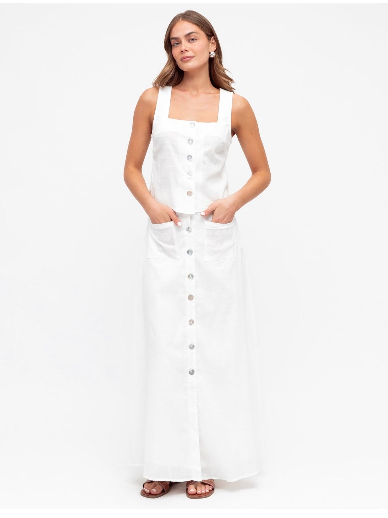 The Kylie Maxi Skirt in a soft pink cotton with shell button details. Match with The Kylie Top for a matching set.