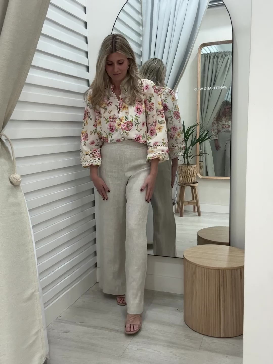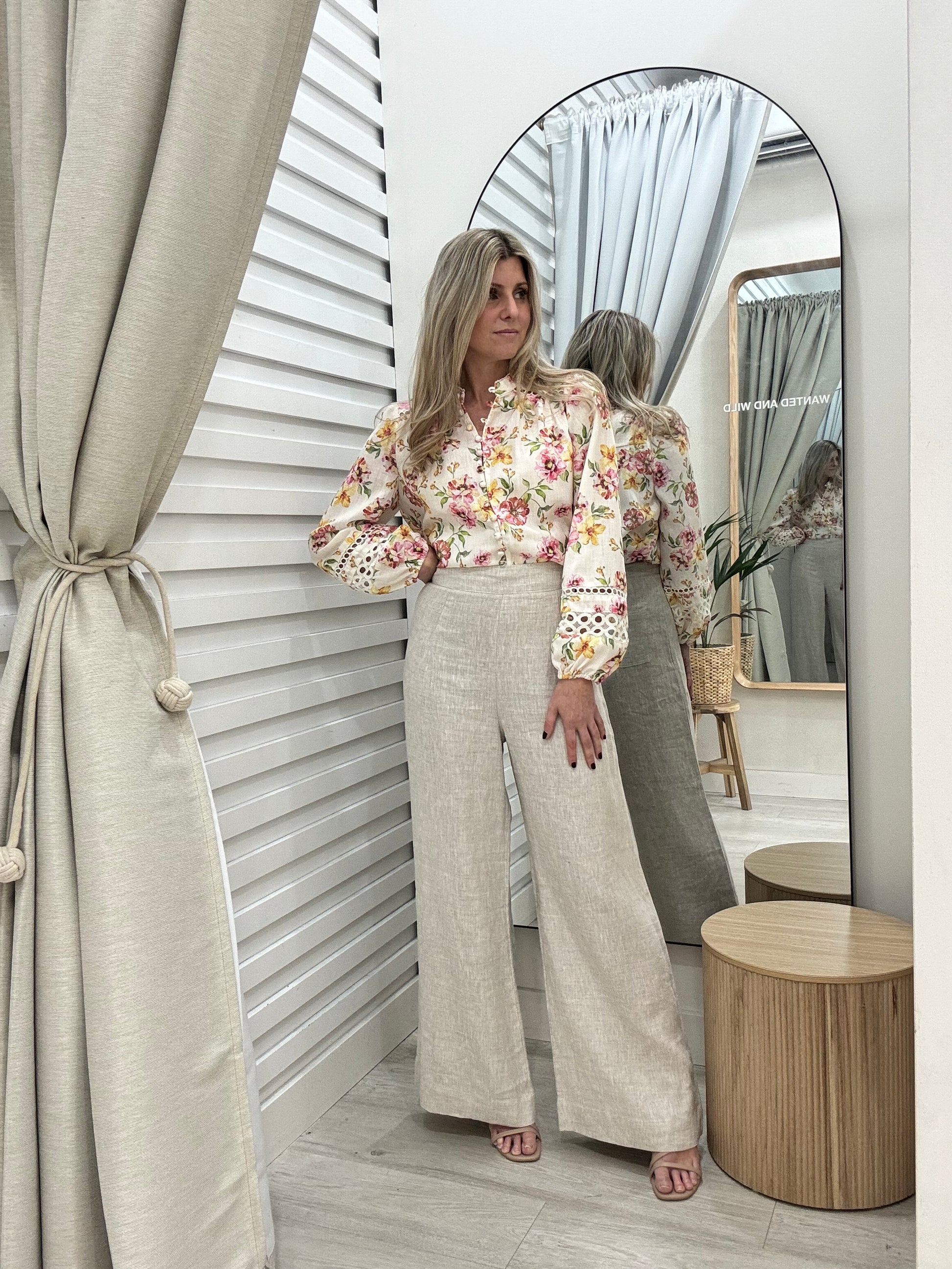 The May Shirt is a feminine must have designed to bring a touch of brightness to your wardrobe. Crafted in a cream base and adorned with an all-over bright floral print, this standout blouse features a stand neckline, delicate front button detailing, and full-length blouson sleeves with gathered cuffs. Whether styled with relaxed linen trousers or tucked into denim, the May Shirt is a great piece to have as we move into spring.