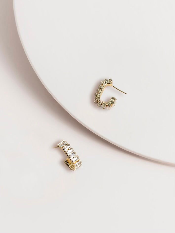 The Vegas Baguette Hoops will add that sparkle to your outfit.